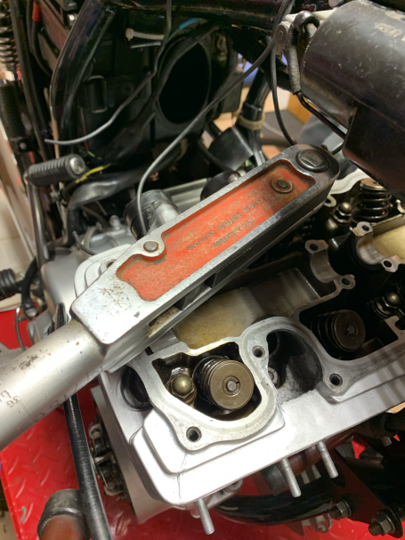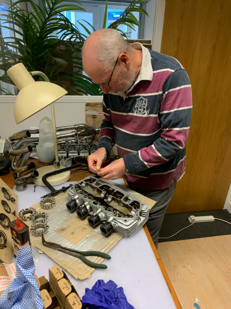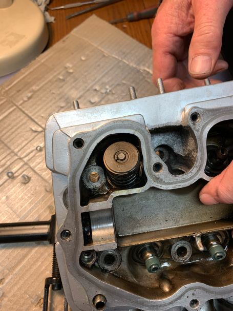 We get the head together with the collets and valve stems. There's a trick, just get the right amount of valve stem showing using your compression tool to allow the collets to find there place, simples! The head tightens down in stages and in sequence to 15 lb / ft (spec 14.5 - 16 lb / ft) without incident.