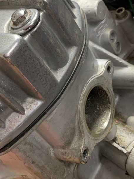For those tackling a similar job you will need to take the main inlet off to remove the carbs, fortunately this has a rubber seal.